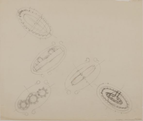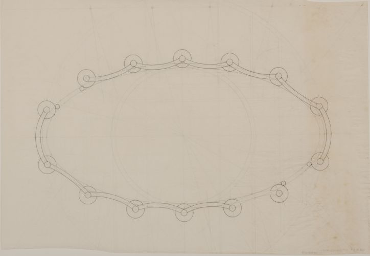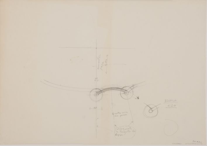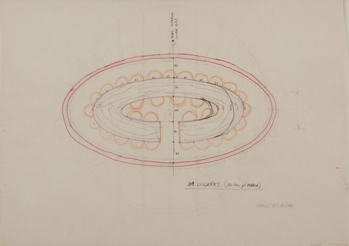 Planta indicando geometria da elipse que forma parede do restaurante
