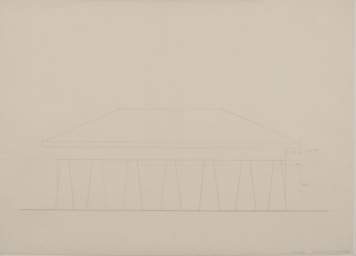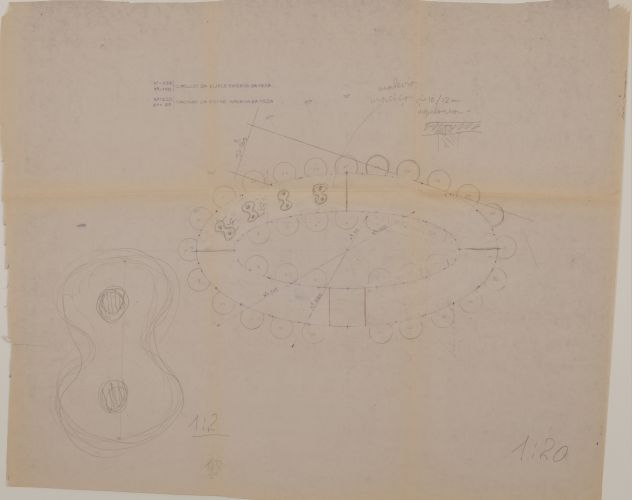 Detalhe do pé da mesa/ Planta da mesa e assentos