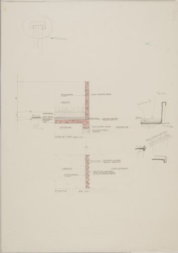 Detalhe em planta da jaje-jardim, detalhe em corte da laje-jardim