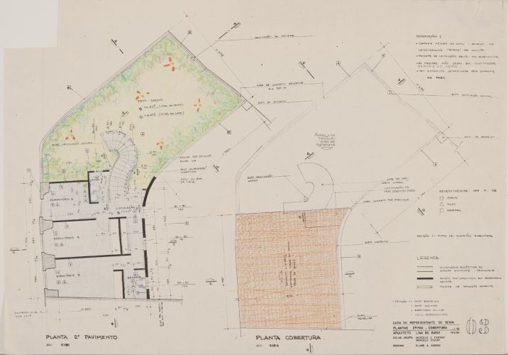 Planta do segundo pavimento, planta de cobertura