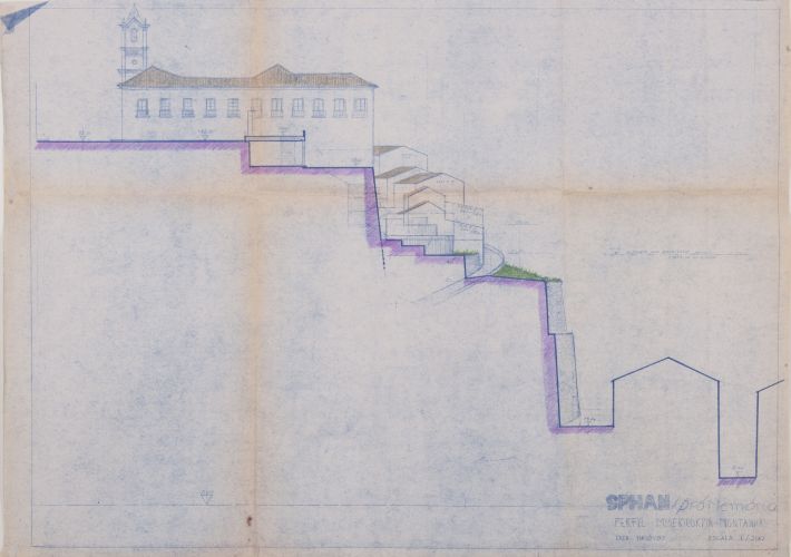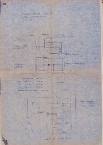 Corte transversal AA, corte transversal BB ruína ao lado da casa nº 7